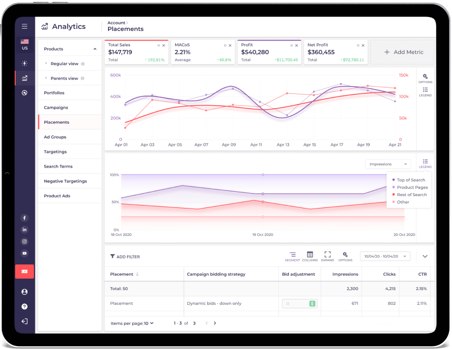 See at what placement your product is shown the most to adjust your campaigns and drive better results.